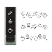 This roller-type stamp makes recording in your notebook or diary enjoyable. It's a self-inking stamp, so no ink pad is required. With just one stamp, you can beautifully stamp three delicate, connected designs. It'll add a lively touch to any blank spaces on the page, or the spaces above and below.