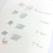 PENTEL 120 range available in 0.3, 0.5, 0.7 and 0.9mm leads. Larger diameter leads are good if you a doing looser, larger sketches.